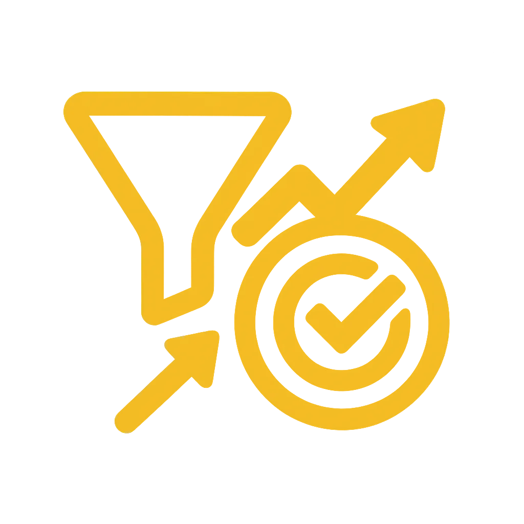 Sales funnel är resan—en koreograferad serie små “ja” som börjar i annonsen och slutar i bokning eller köp: först fångar vi uppmärksamheten, sen gör vi beslutet lätt, sen bekräftar vi att det blev rätt.